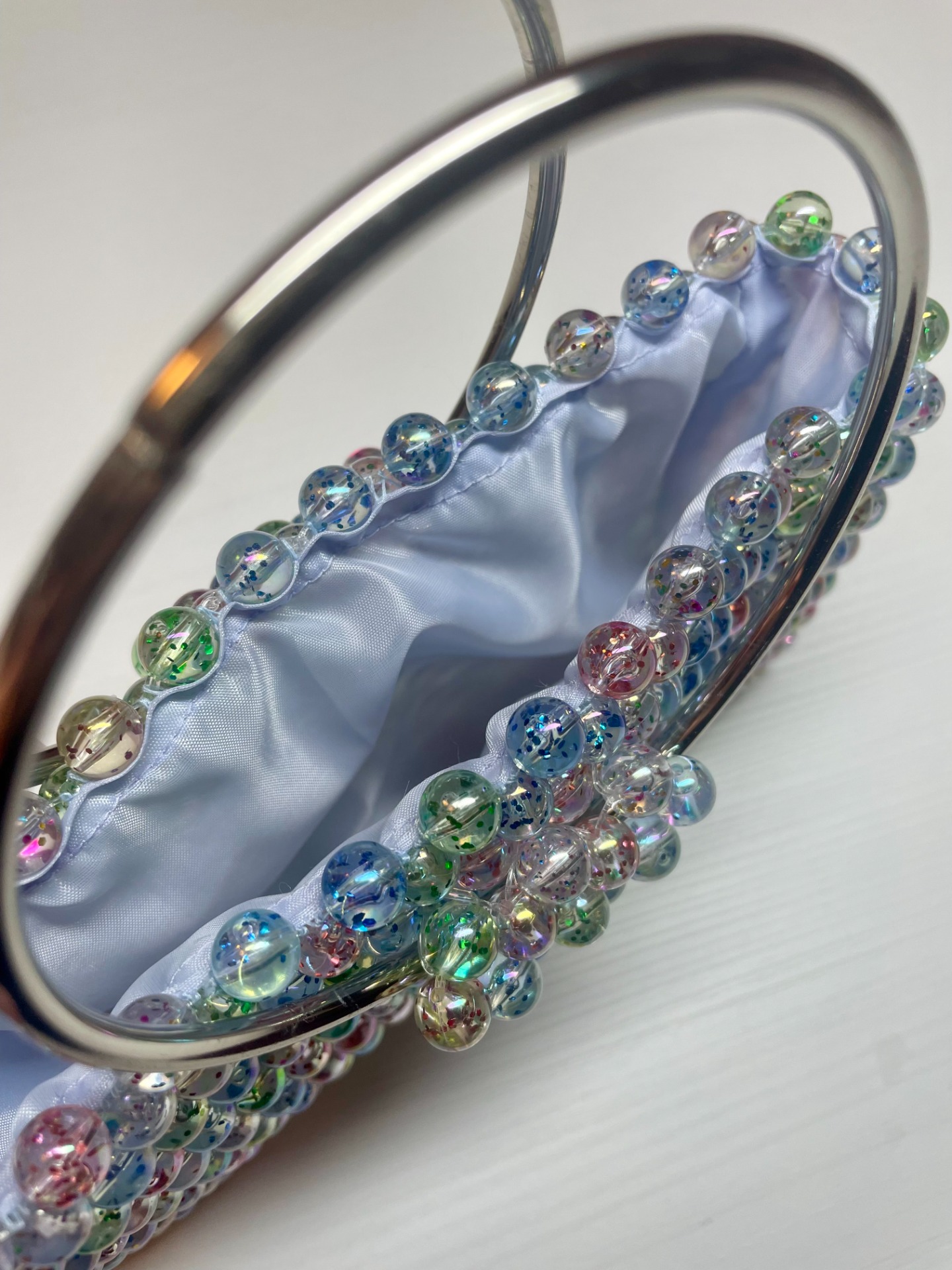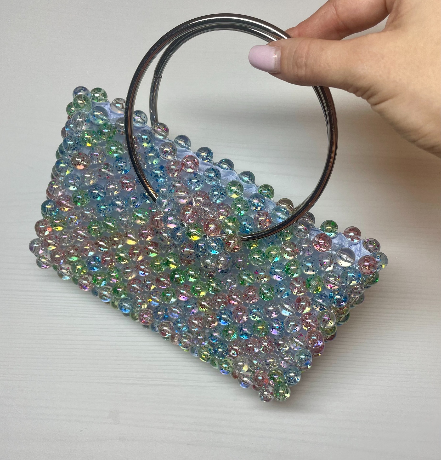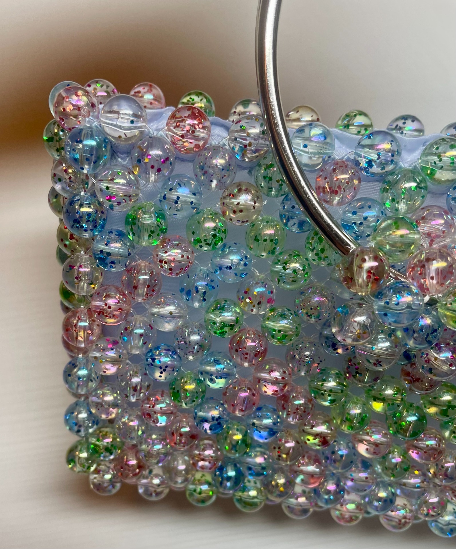 Duha v dlani je malá ručně vyráběná kabelka zdobená pestrými barevnými kuličkami. Svým hravým a živým designem je ideální jako výrazný doplněk k letnímu i každodennímu outfitu.